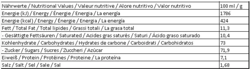 | durchschnittliche Nährwertangaben | pro 100g |